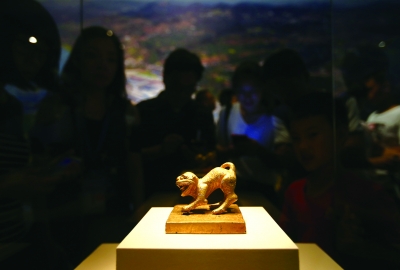 针对江口古战场遗址处于岷江河道内的复杂情况,考古工作者首次采用了围堰考古发掘的全新模式。此次展览中,不仅有图片、文字描述考古发掘过程,视频演示围堰三维效果,更搭建了展开面积达50多平方米的四面沉浸式投影区域,让观众如同置身考古发掘现场,直观了解发掘过程。